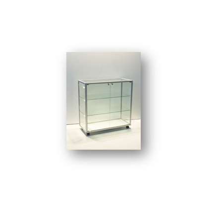 Vetrina espositiva cm 98x42x112H, colore silver, 2 ripiani, strisce led