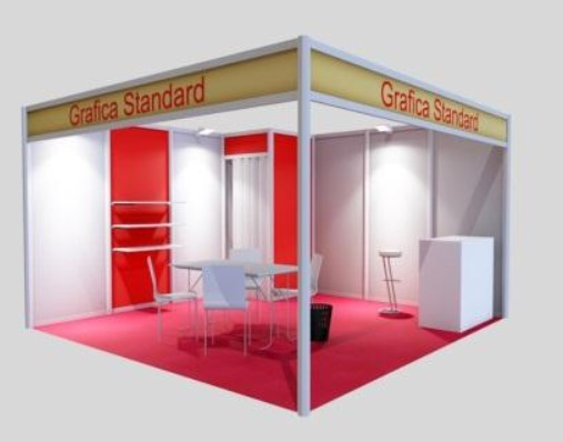 N° 1 insegna per ogni lato aperto dello stand con Ragione Sociale dell'Espositore scritta in colore rosso, font Arial